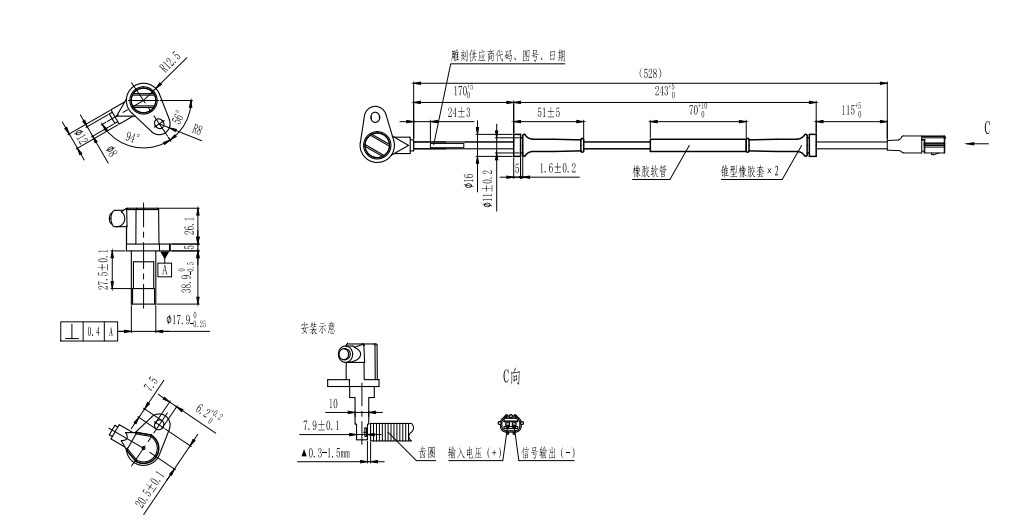 开关型霍尔传感器按预定位置有规律地布置在轨道上,当装在运动车辆上的永磁体经过它时,可以从测量电路上测得脉冲信号。根据脉冲信号的分布可以测出车辆的运动速度。