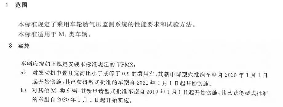 2000年11月1日,联邦法案要求2003年以后出产的所有新车都需将TPMS作为标准配置;2006年11月1日起所有需要行驶在高速公路上的汽车都需配置TPMS。