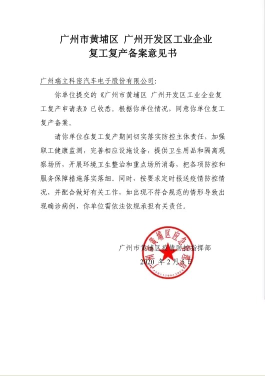 目前,瑞立科密正在全面恢复生产,各部门各司其职,高效运转,全力提升产能,满足客户需求,力保市场份额,确保实现一季度平稳开局。针对全面复工复产,瑞立科密做出以下防护措施: