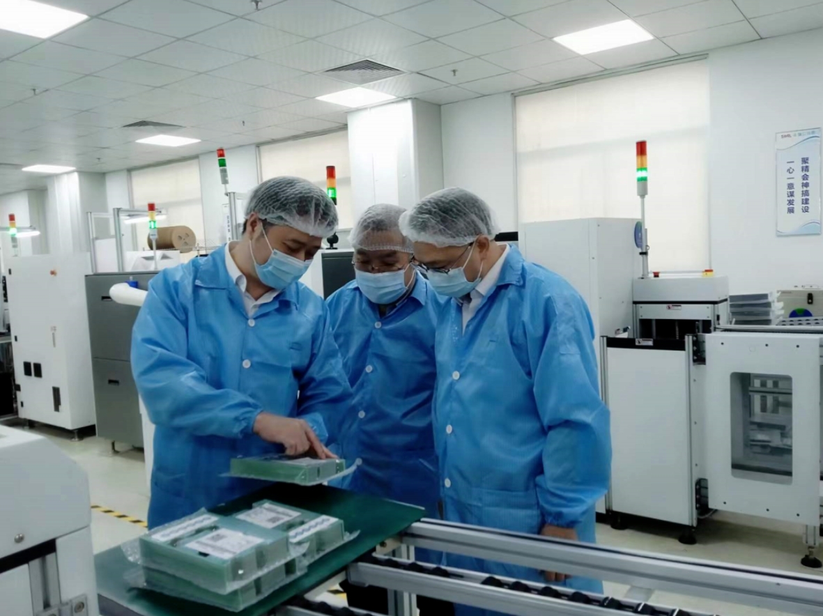 黄万义总经理陪同肖春辉常委一行参观公司展厅及SMT、ECU、智能驾驶产品等车间,