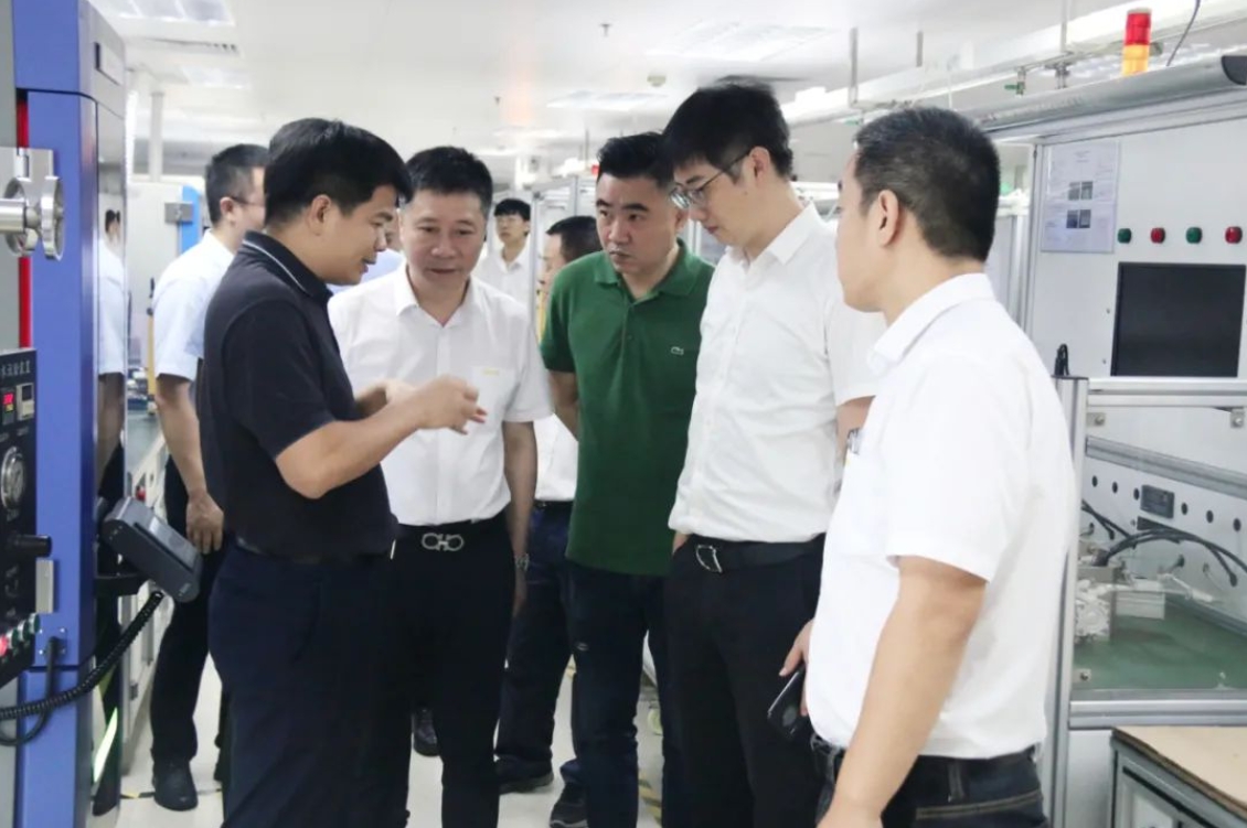总经理黄万义陪同客人参观了公司展厅、省级技术中心及SMT、ECU、摄像头等精密车间,介绍了瑞立集