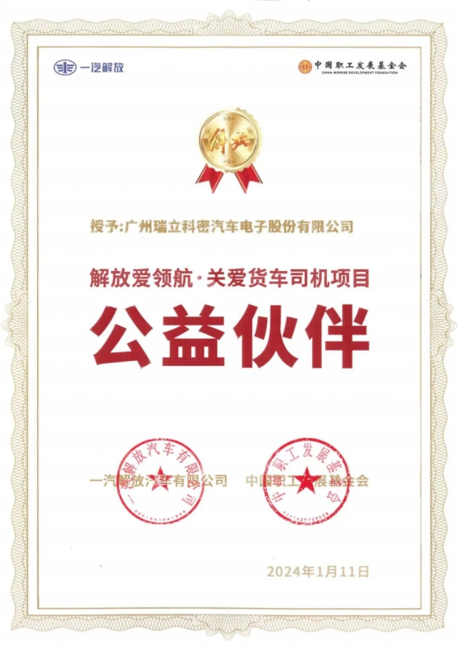 目,“解放爱领航”公益伙伴行动首批有10家爱心企业加入,广州瑞立科密汽车电子股份