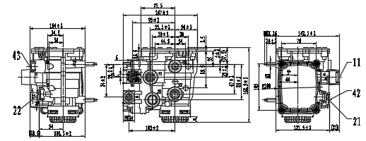 7、1、2号口M22X1.5,4号口M16x1.5, 安装孔4-M8深18.5,电器接插件 967650-1